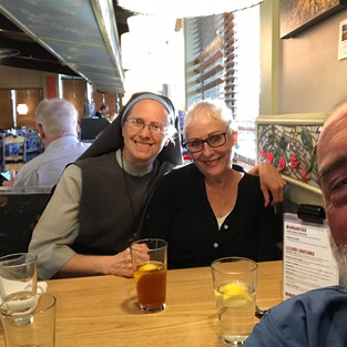 I met up with Sandra tonight. She was the nice lady I met in Amboy that gave me grapes and offered to let me stay in her yard. Sandra took me to dinner with Sister Kateri. We went to the Range Cafe. We were just talking and they had to let us know that they are closed. The manager came over and gave me two muffins and told me to have a safe journey. Sister Kateri told her what I was doing.